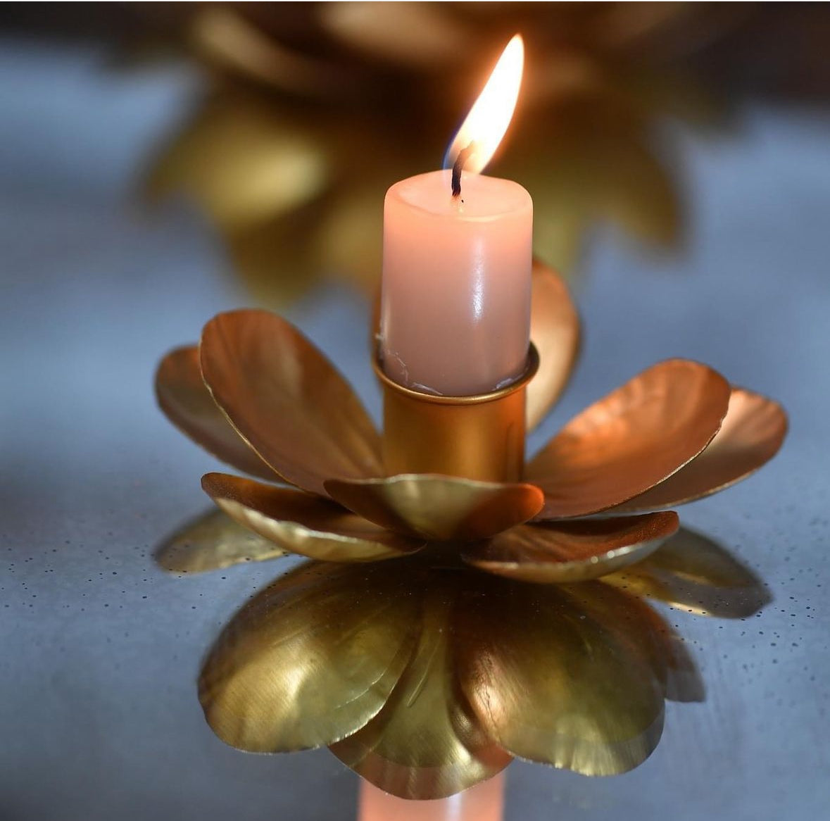 Bougeoir en laiton en forme de fleur, il apporte l’accessoire qu’il faut à votre table