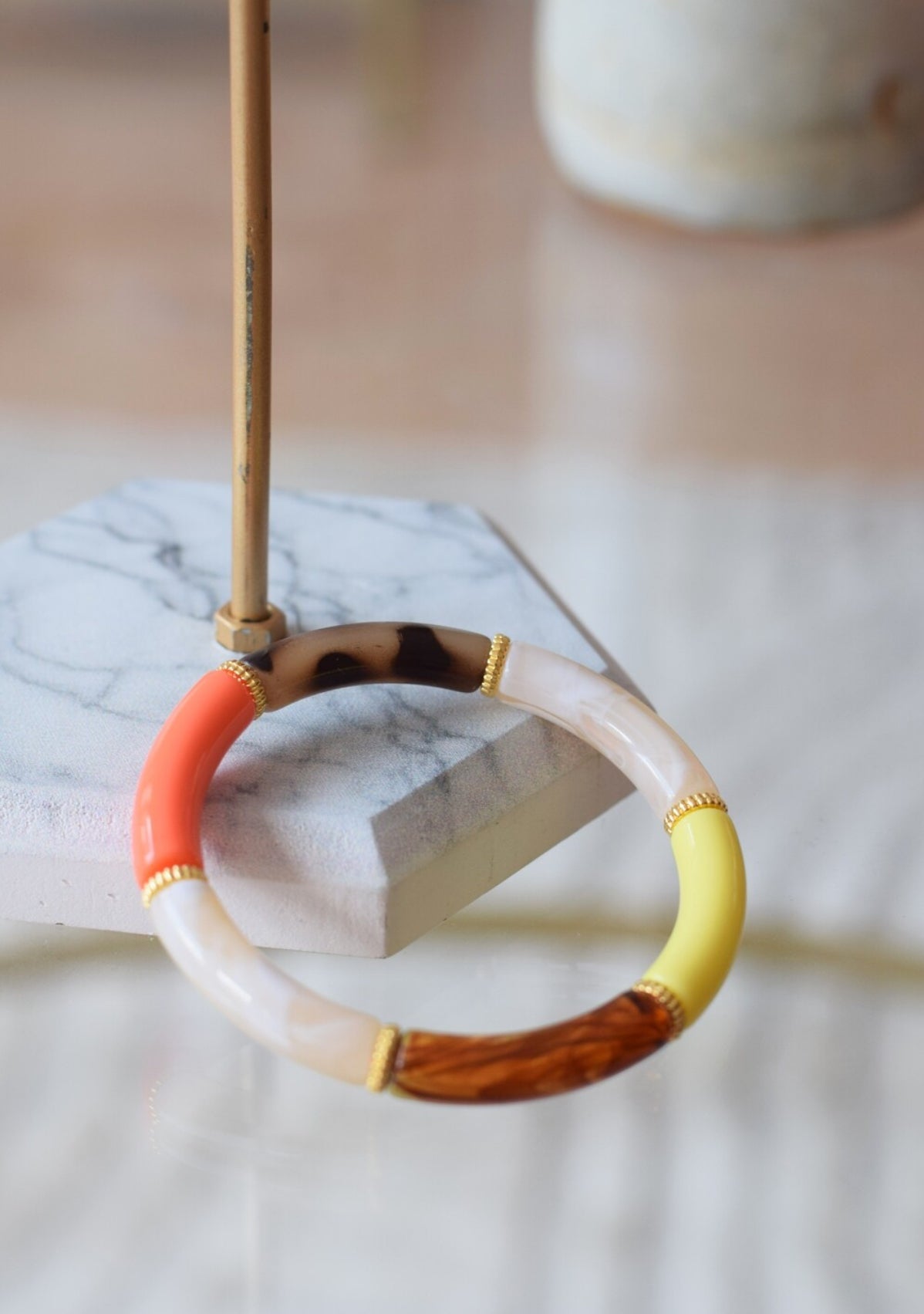 Adoptez ce bracelet en perles acryliques avec un détail doré. Un bracelet fin, tendance à porter sans modération !