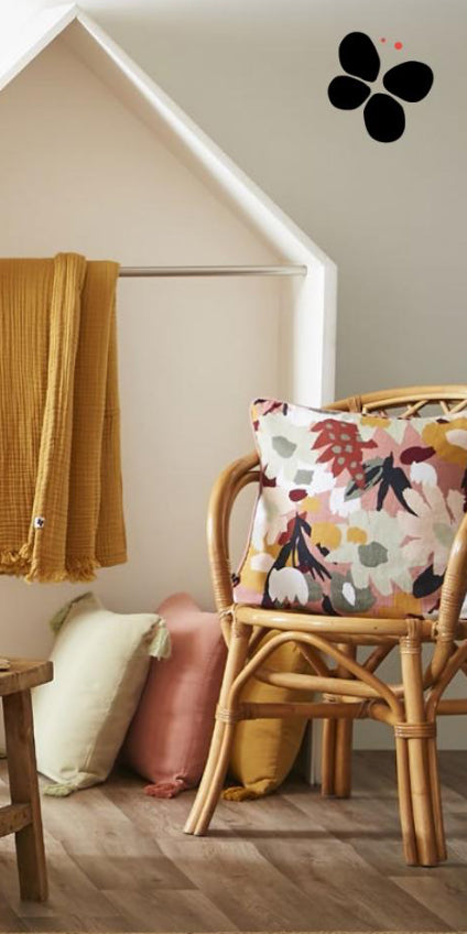 fleurs aux formats xxl qui s’harmonisent parfaitement avec 9 couleurs , le safran, Terracotta, Romarin, Chantilly, Rose pêche, Lie de vin, Guimauve, Vert d’eau, et Minuit