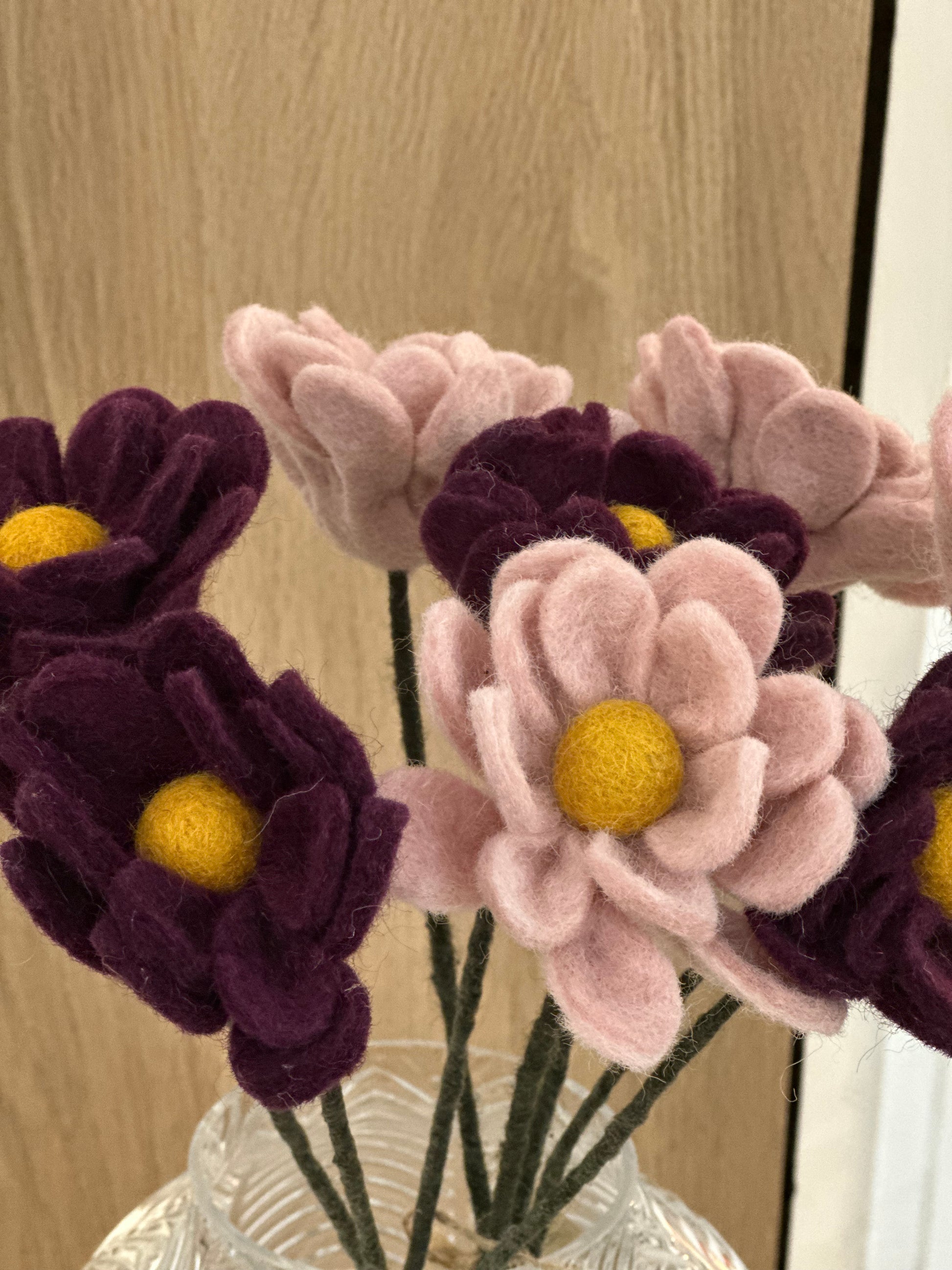 Fleur d’Anémone en feutrine à partir de laine naturelle