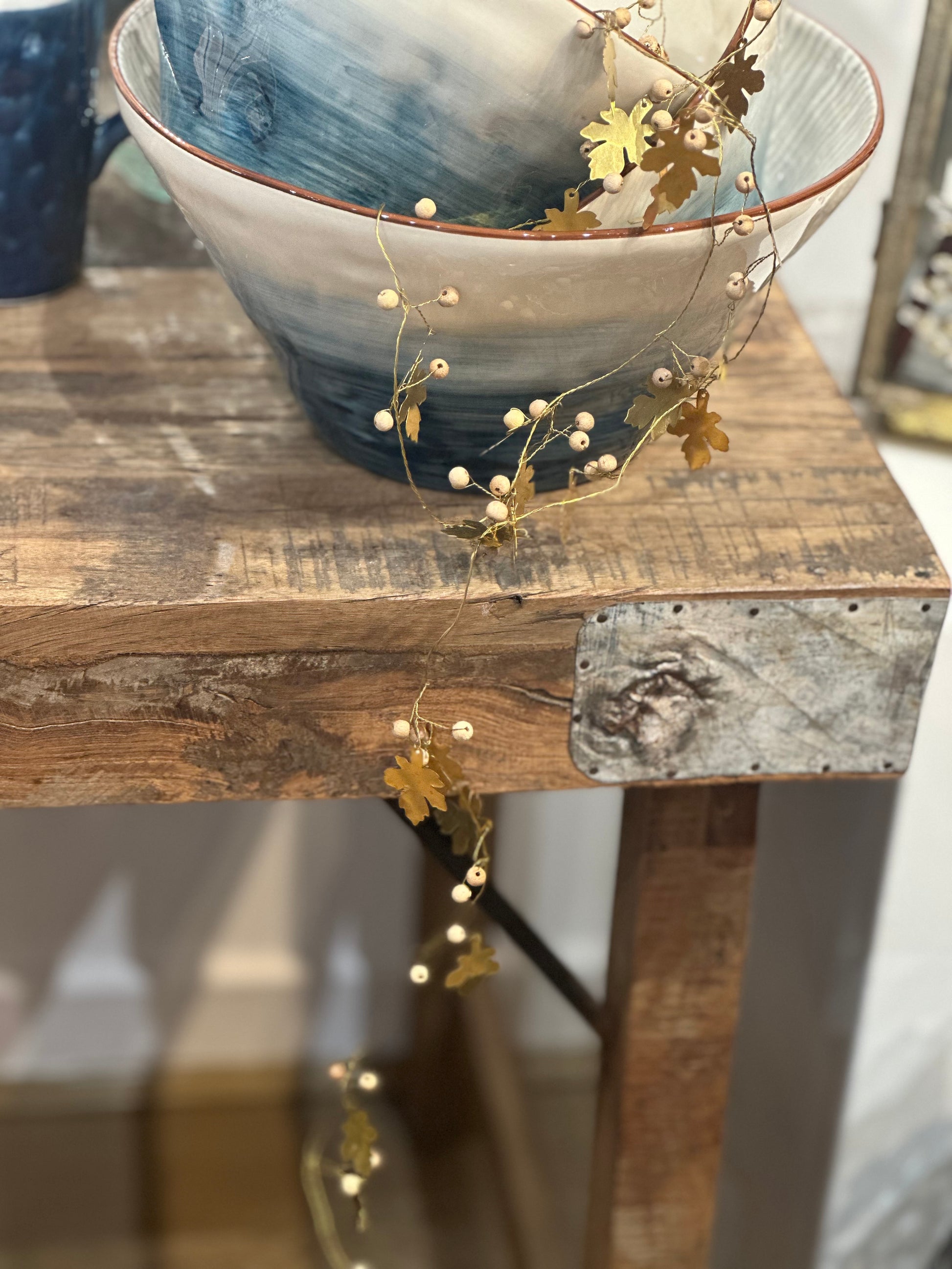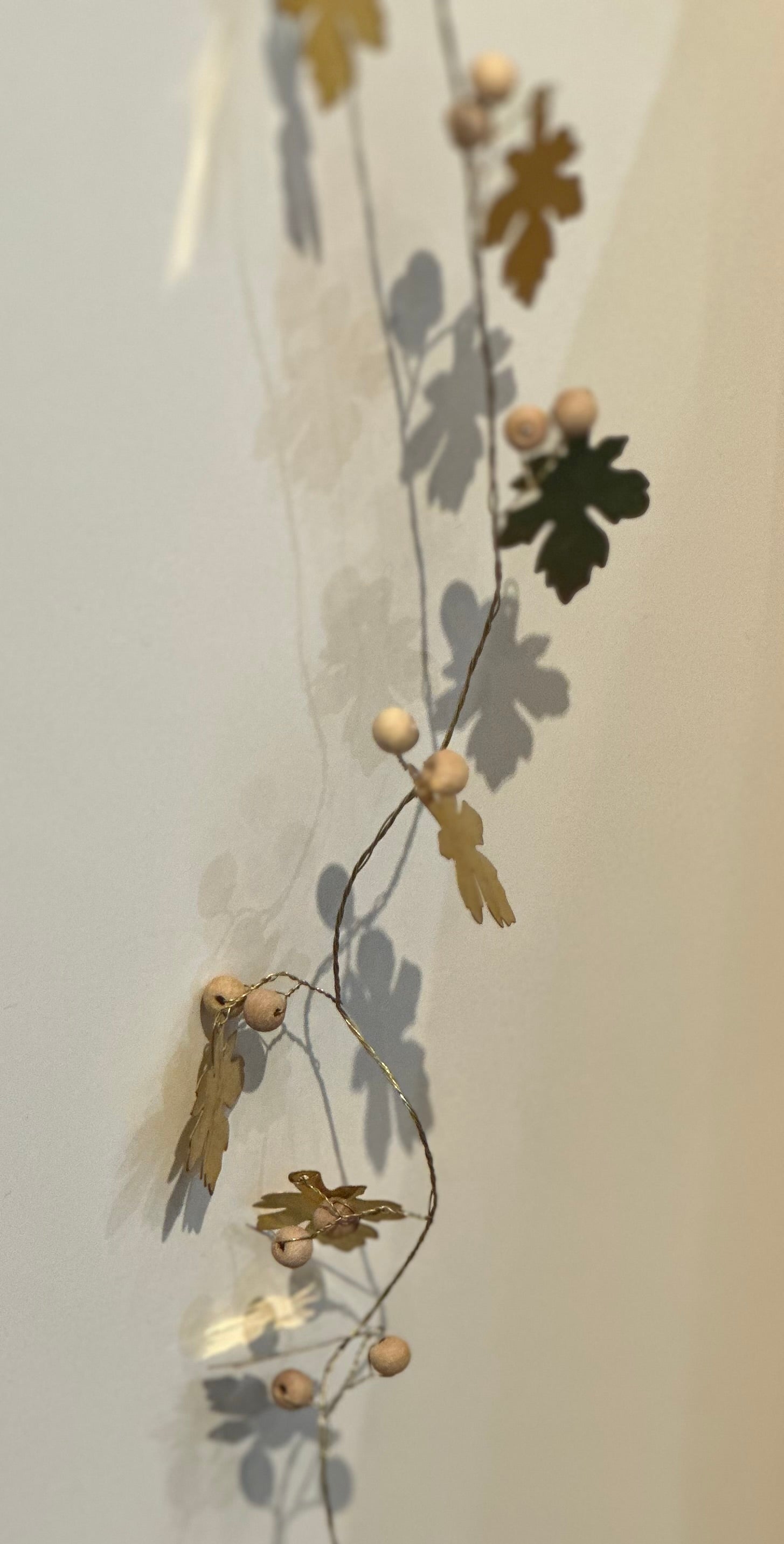 Guirlande feuilles laiton et perles de bois