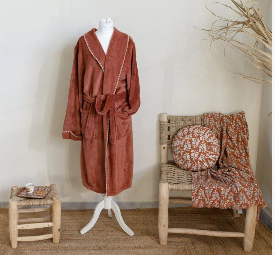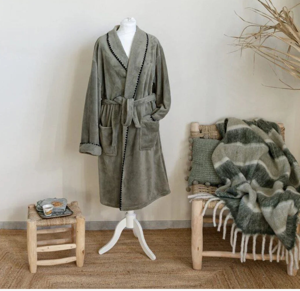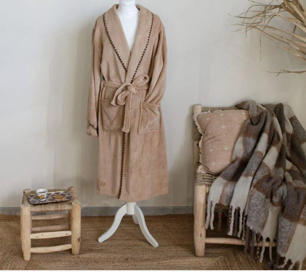 Enveloppez-vous de douceur avec ce peignoir polaire doux comme une caresse. L’accessoire cosy parfait pour la maison, élégant avec sa coupe oversize et son col châle avec surpiqûre contrastée