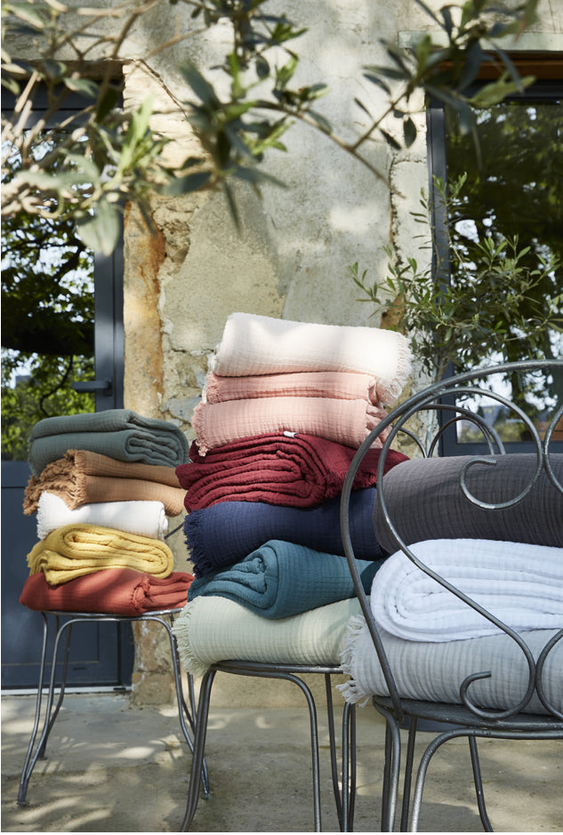 On se refuse rien avec ce plaid à franges GAÏA, en gaze de coton ( 220g/m2)