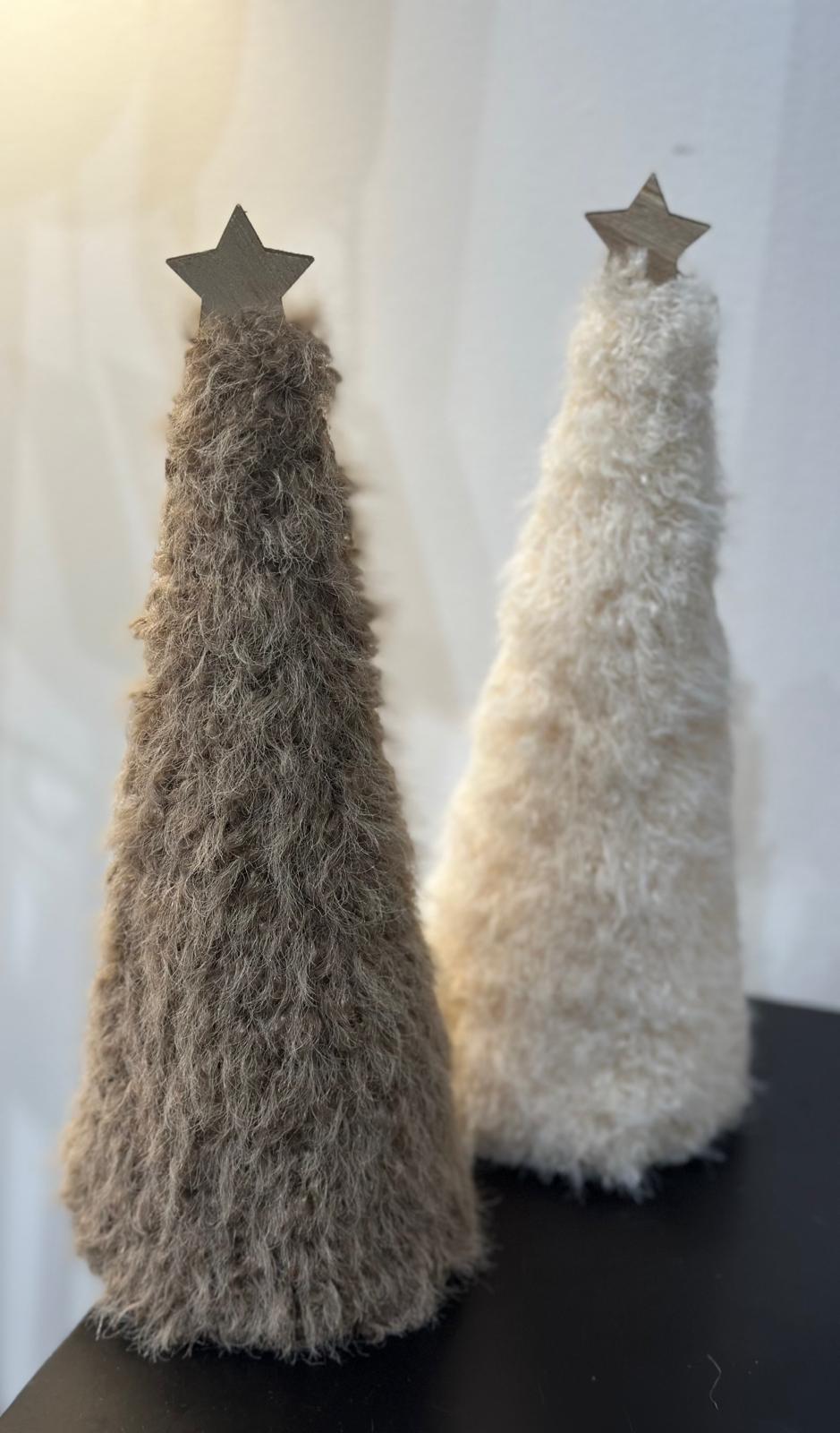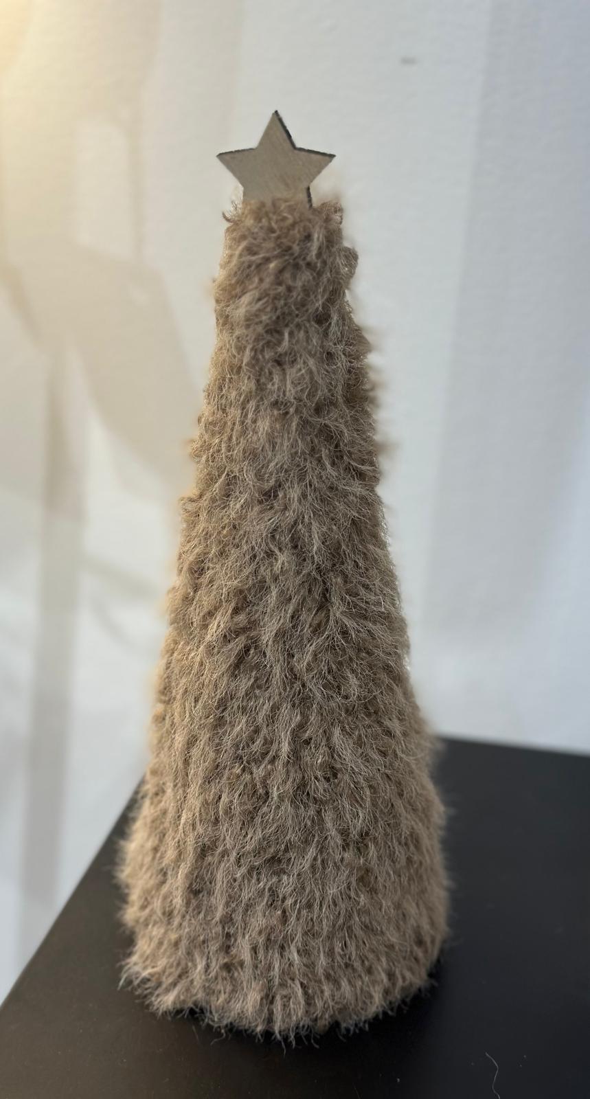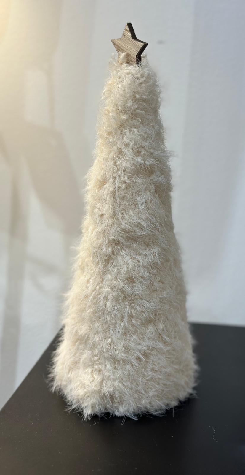 Sapin décoratif en fausse fourrure surmonté d’une étoile