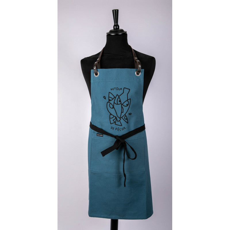 Avec son lien en cuir, tablier pour homme "Retour de pêche" en toile épaisse