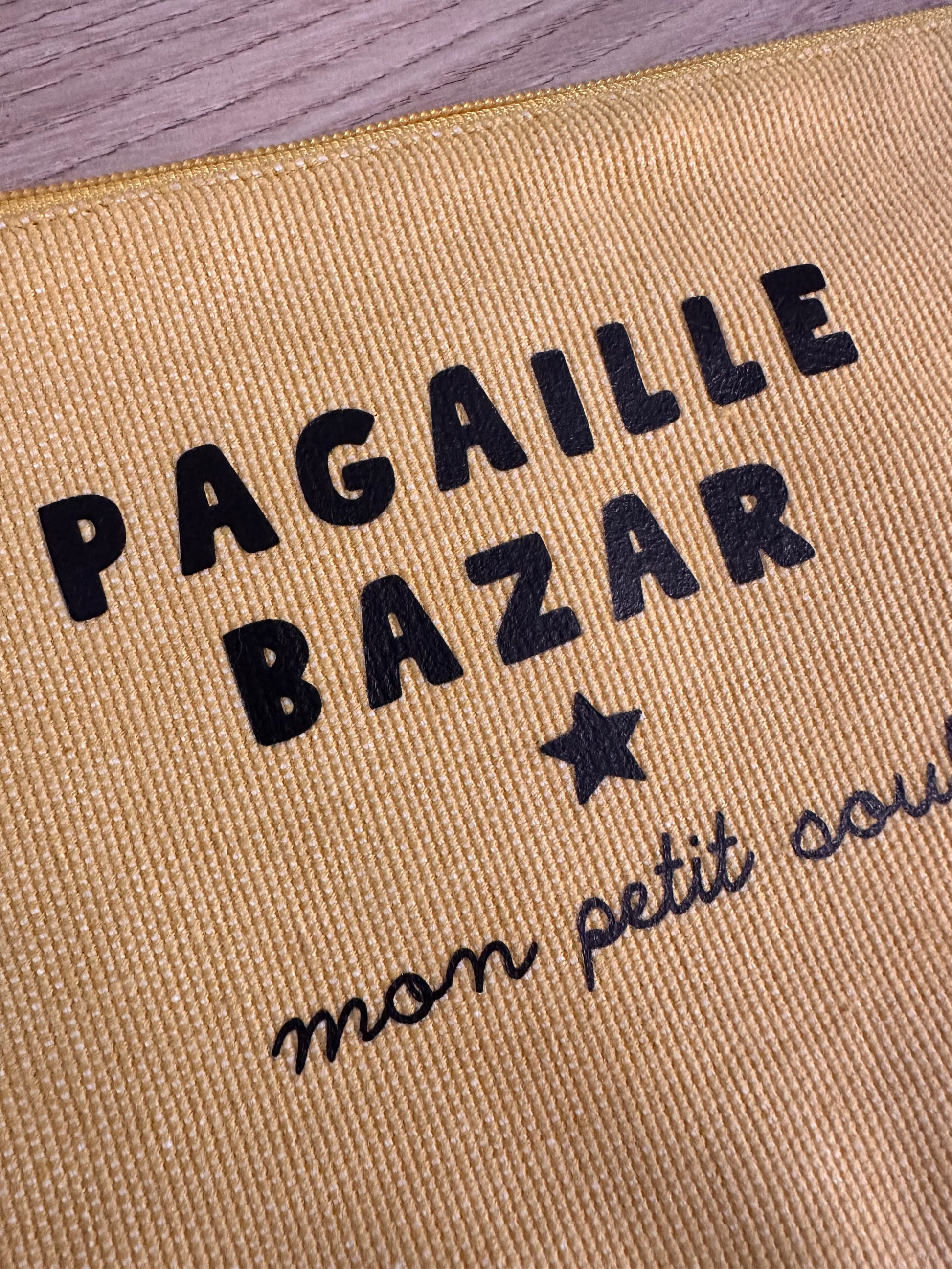 Jolie trousse plate en tissu de la marque Sophie Janière, forme rectangle fermée par zip.